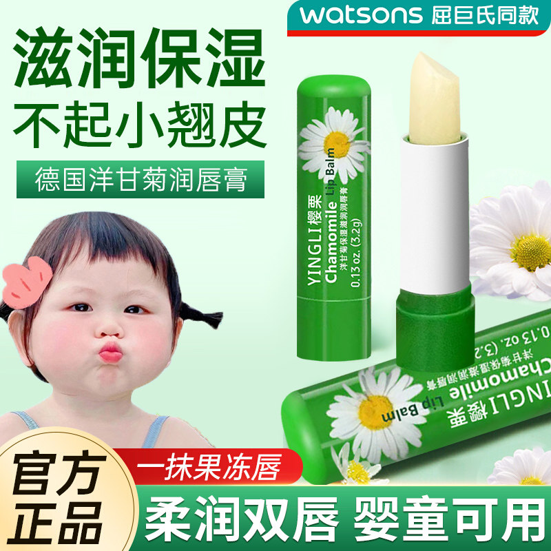 屈臣氏小洋甘菊儿童润唇膏女童宝宝小女孩保湿滋润孕妇防干裂无色