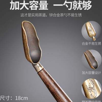 尚言坊 锡制舀茶勺分茶器功夫茶具零件煮茶器配件实木茶勺家用