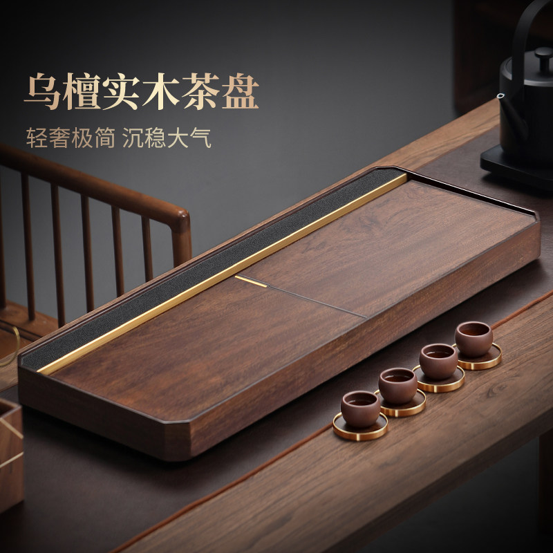 2023新款天然乌檀实木茶盘家用高档国画石客厅功夫茶具茶几茶台