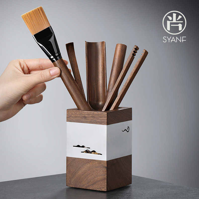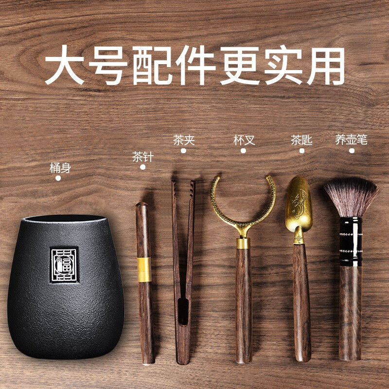 尚言坊茶道六君子套装功夫茶具配件大全零配黑檀实木茶刀笔刷茶夹