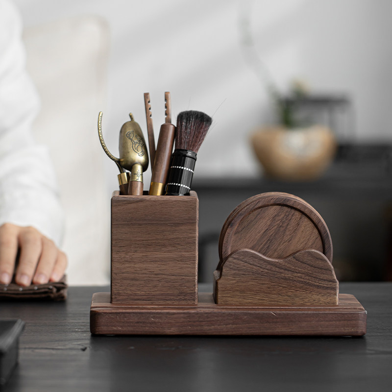 尚言坊茶杯架中式置物架黑檀木杯架子收纳架配件功夫茶具茶道零配