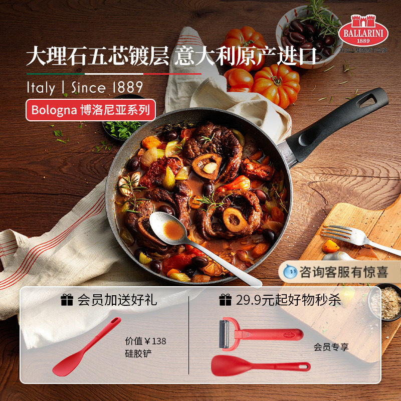 Ballarini巴拉利尼旗舰店进口炒锅平底锅不粘锅电磁炉通用30cm