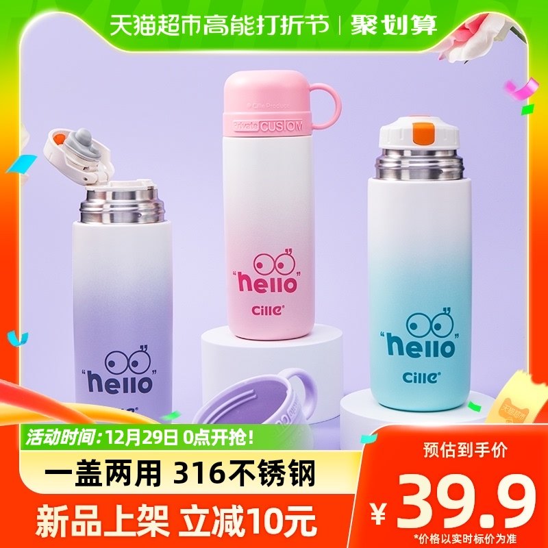 cille希乐保温杯儿童不锈钢水杯冬季杯子男女生高颜值学生大容量