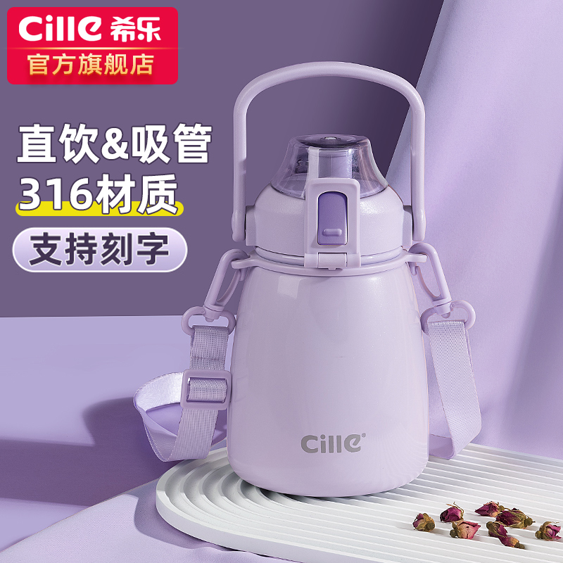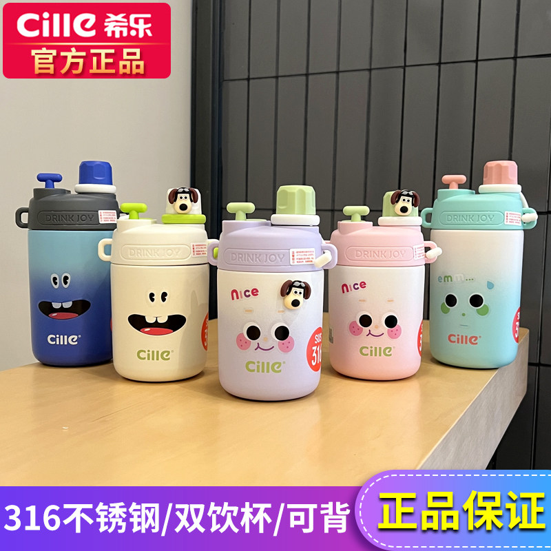 cille希乐保温杯子儿童高颜值大容量水杯学生水壶吸管冬季大肚杯