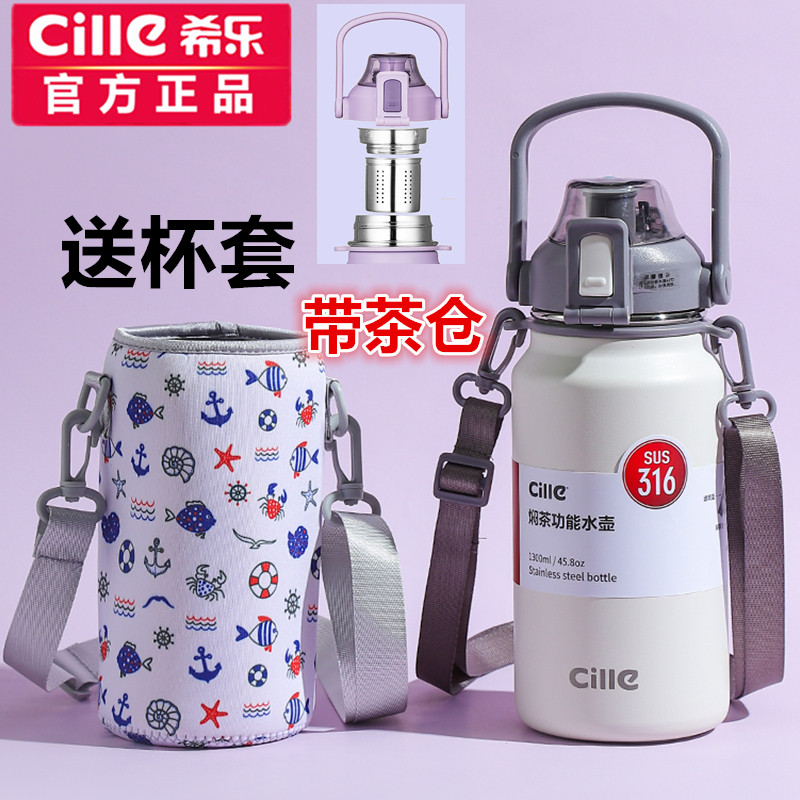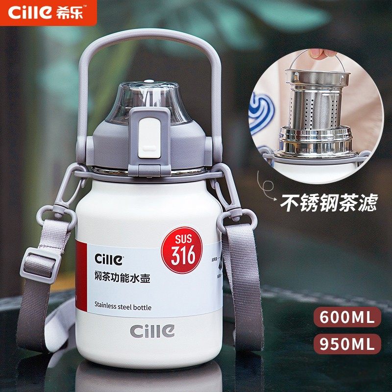 希乐保温杯大容量水杯男女学生316不锈钢茶水分离杯泡茶保温水壶