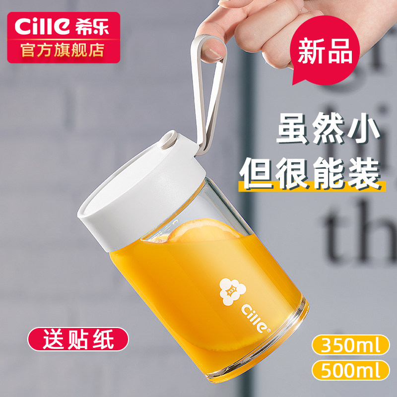 希乐玻璃杯女夏高颜值便携牛奶咖啡果汁早餐杯刻度新款可爱水杯子