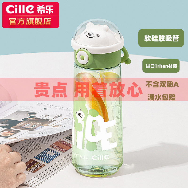 希乐水杯便携男女学生大容量运动水壶tritan儿童夏季吸管杯塑料杯