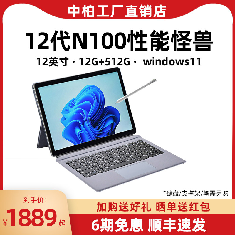 【12代N100】中柏EZpad v12英寸大尺寸win11平板电脑二合一带键盘windows轻薄2024新款办公专用学习分期付款