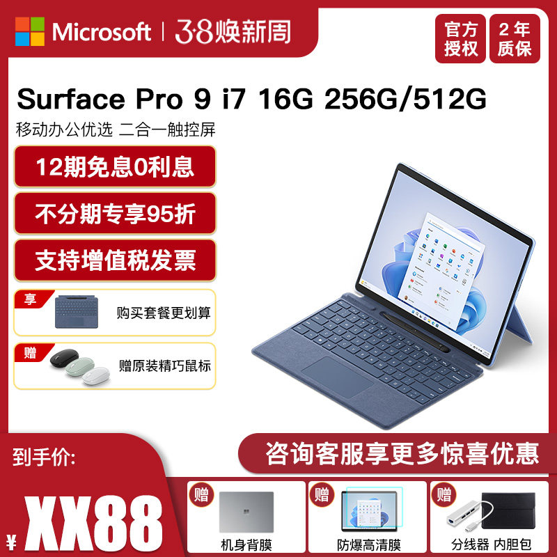 微软Surface Pro9i5 i7 16G256GB Pro8平板电脑win11商务办公便携