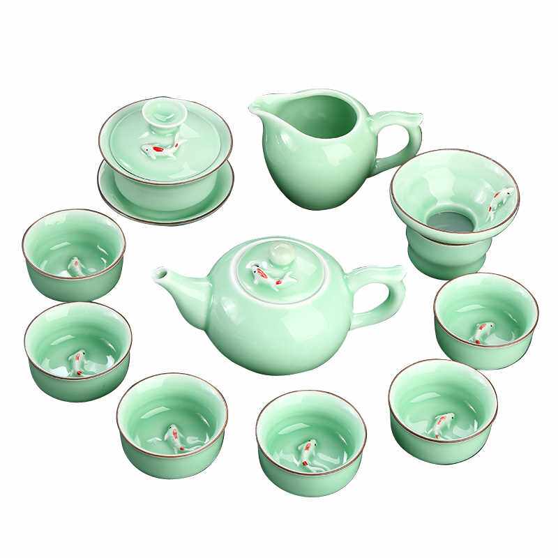 康乐品小鱼茶杯功夫茶茶具套装青瓷家用陶瓷自动茶具茶壶盖碗中式