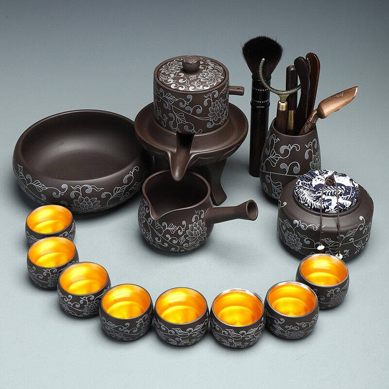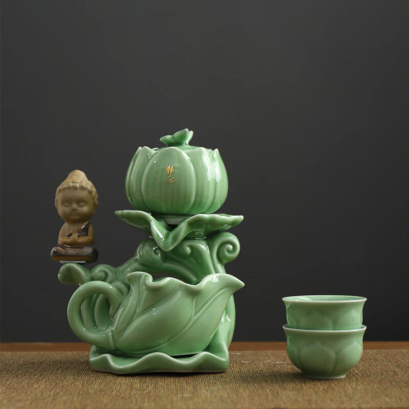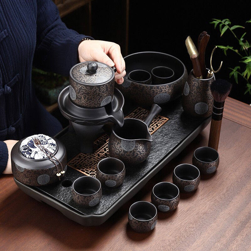 康乐品自动茶具鎏银茶具套装家用石磨懒人功夫茶具旋转出水泡茶器