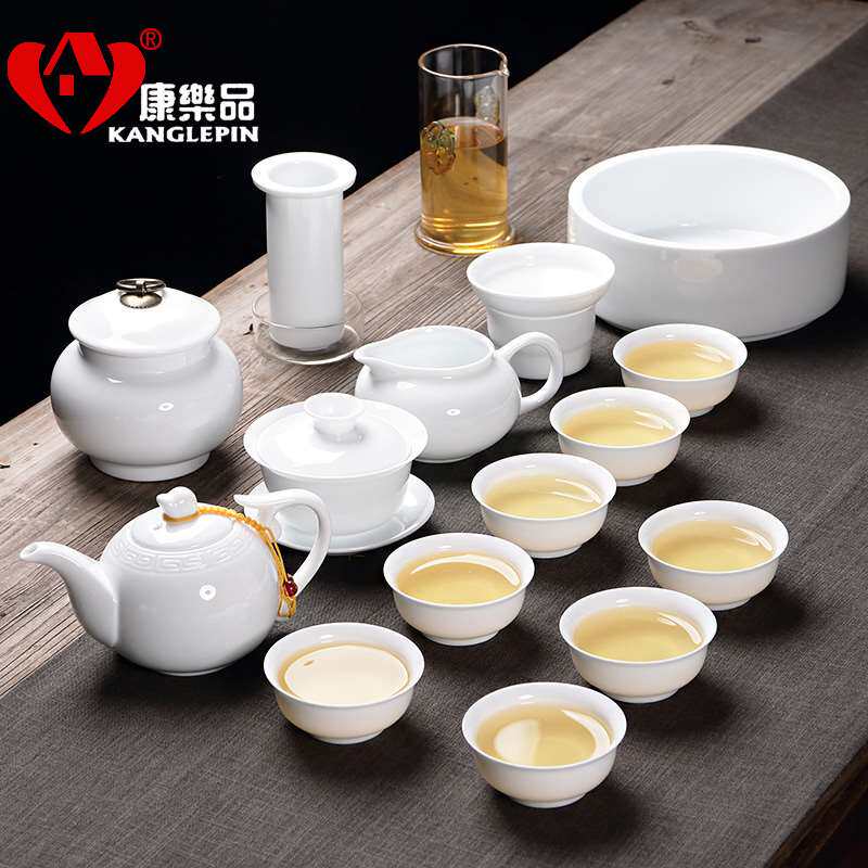 康乐品(KANGLEPIN)功夫茶具套装旅行茶具中国白家用陶瓷泡茶盖