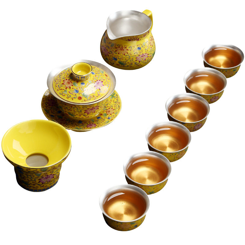 新康乐品银茶具套装 925999功夫茶 家用纯手工鎏银盖碗茶杯品茗