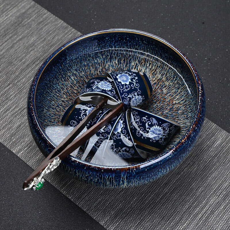 康乐品曜变陶瓷茶洗大号杯洗茶渣桶水盂笔洗洗茶碗家用茶具配件曜
