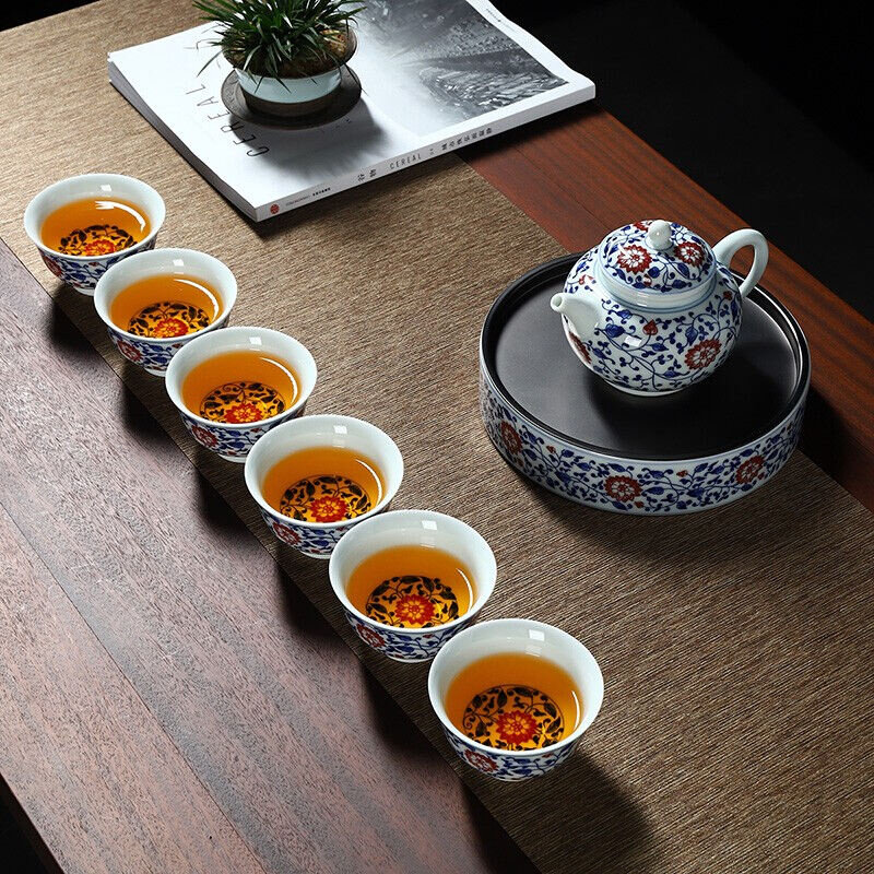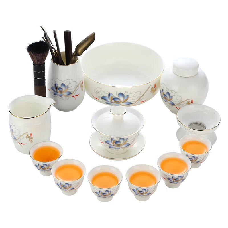 康乐品功夫茶具套装青花釉里红陶瓷盖碗茶杯家用泡茶壶公道杯壶承