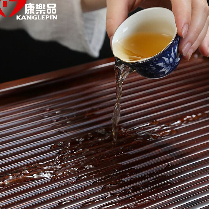 康乐品功夫茶具实木茶盘茶台家用简约茶海茶台茶托盘大黑檀茶盘-