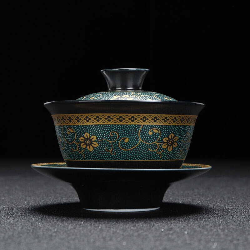 康乐品陶瓷盖碗黑陶三才碗泡茶碗家用功夫茶具配件碗敬茶碗泡茶器