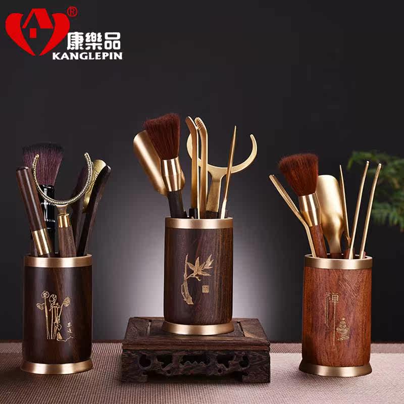 康乐品茶具配件铜六君子套装花梨家用茶艺收纳茶筒自动茶具夹子摆