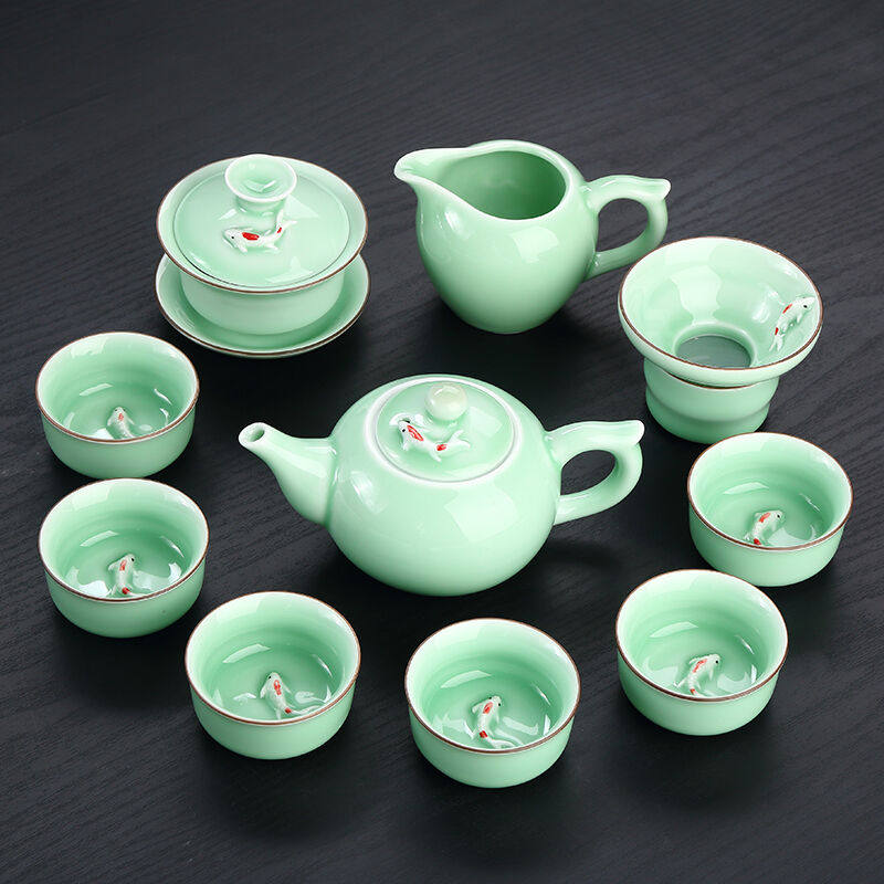 康乐品龙泉青瓷茶具套装功夫茶具陶瓷茶壶茶杯青瓷鱼杯整套套装5