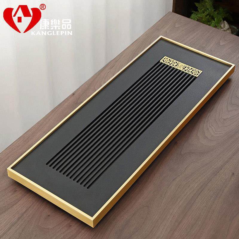 康乐品整块乌金石茶盘纯铜包边悟筝托盘茶台石材家用功夫茶具茶海