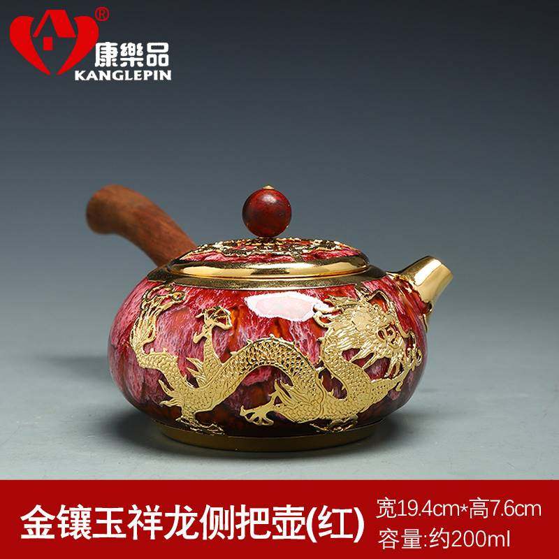 康乐品金镶玉纯手工镶金功夫茶具陶瓷茶壶茶杯建盏泡茶单壶家用