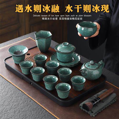 康乐品(KANGLEPIN)绿冰裂纹茶具套装清山陶也黑冰陶瓷茶杯功夫茶