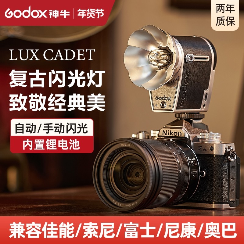 现货 神牛LUX CADET 复古闪光灯适用富士佳能尼康徕卡索尼微单单反相机外置热靴灯内置锂电池自动机顶闪光灯