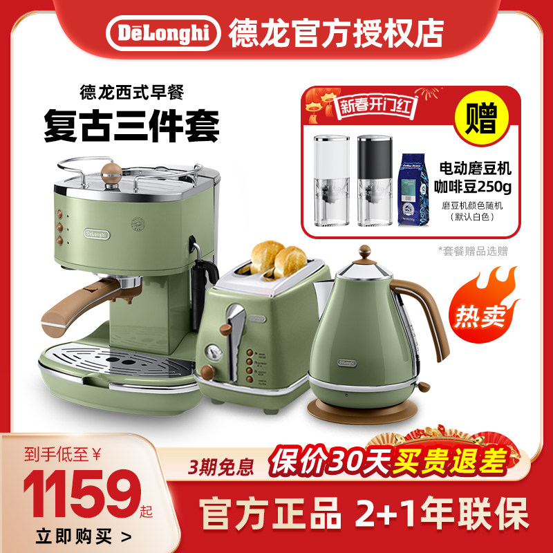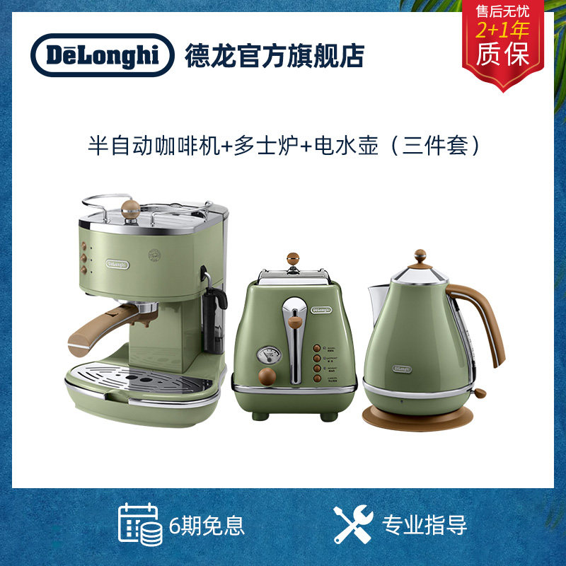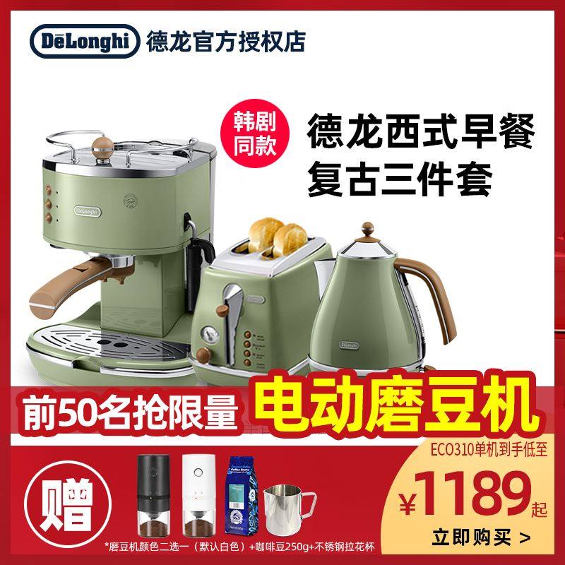 Delonghi/德龙ECO310半自动咖啡机+多士炉+电水壶三件套网红复古