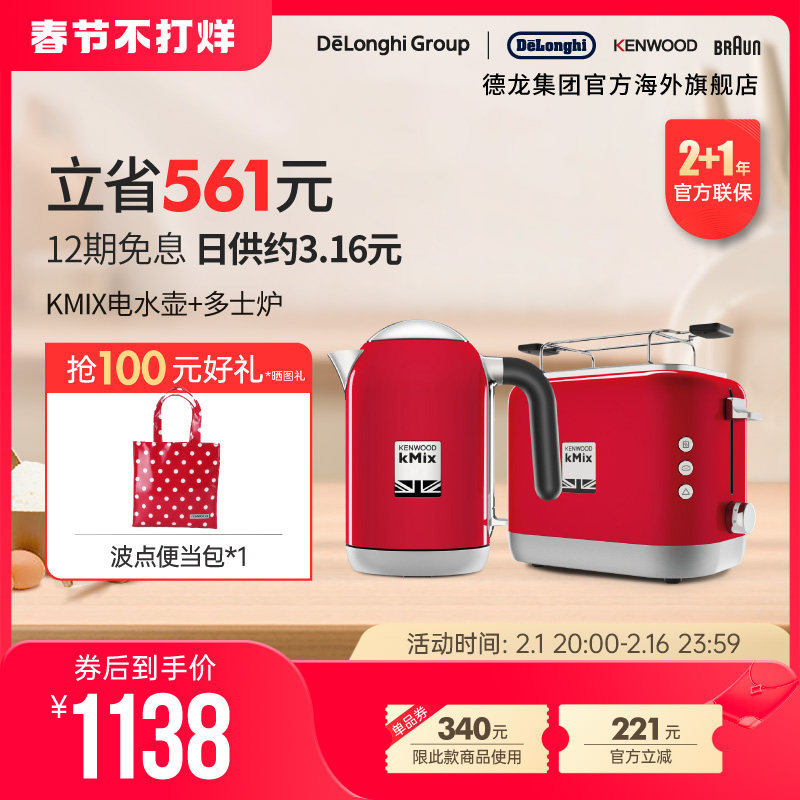 。Delonghi/德龙复古早餐组合多士炉+电水壶 烤面包机烧水壶