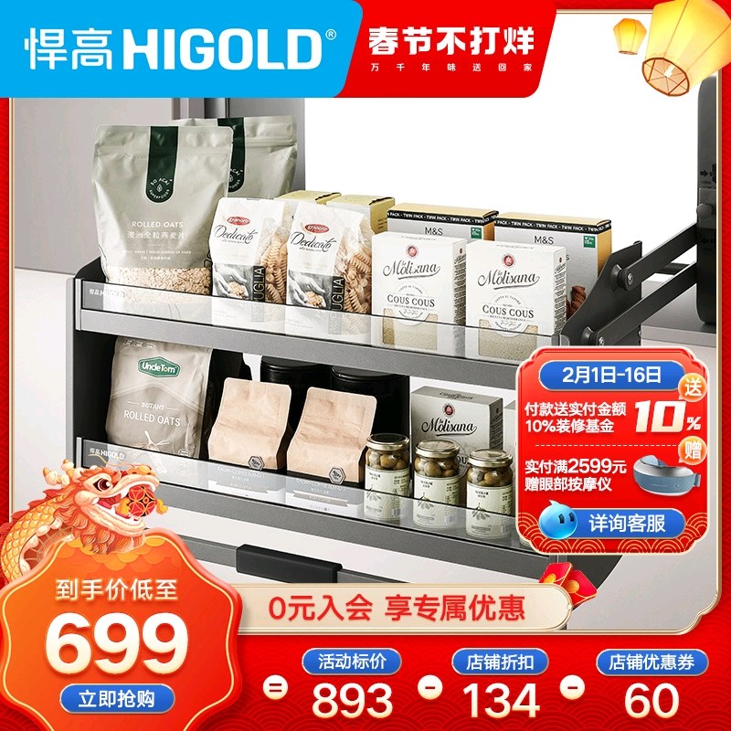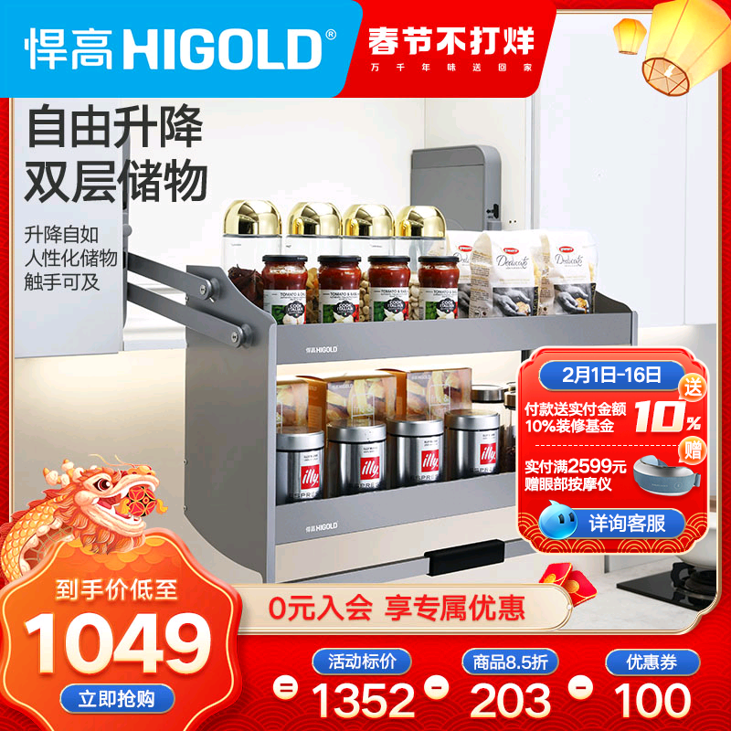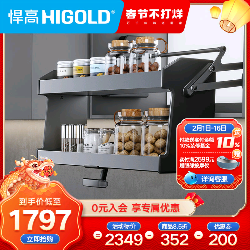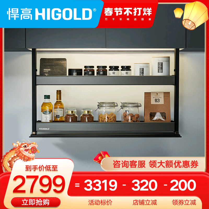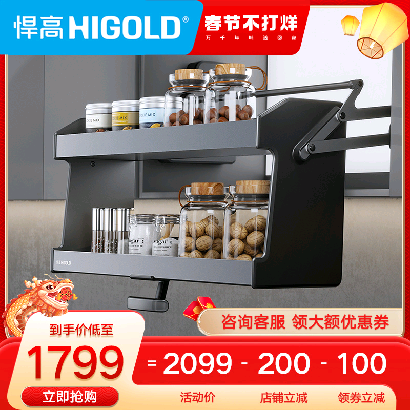 HIGOLD/悍高厨房双层拉篮吊柜升降拉篮智能电动升降拉篮调味篮