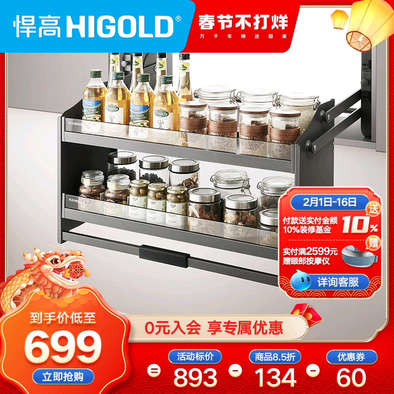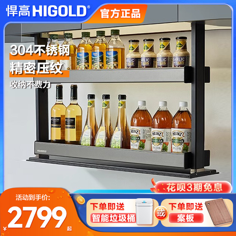 HIGOLD/悍高厨房双层拉篮吊柜升降调料置物架智能电动升降调味篮