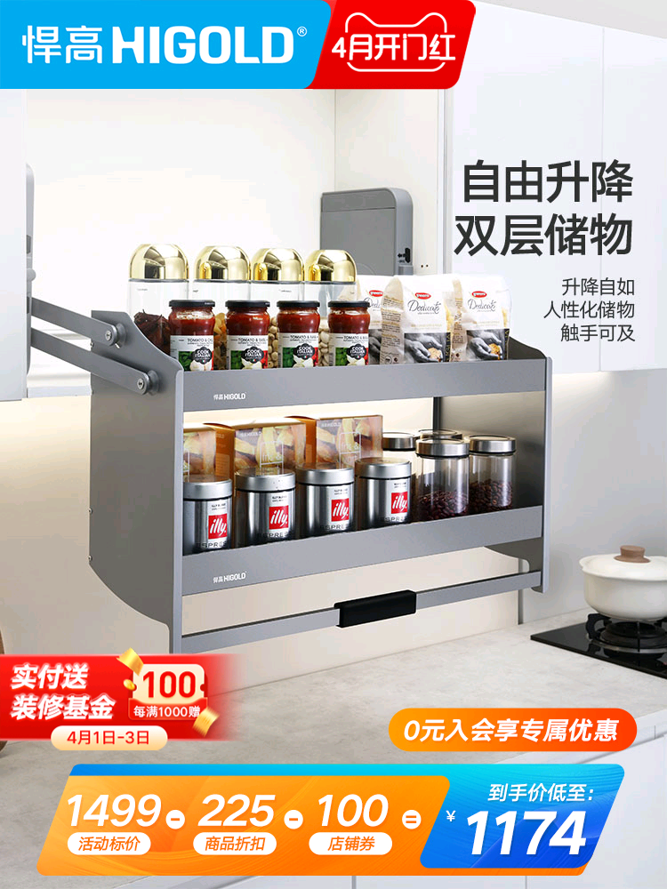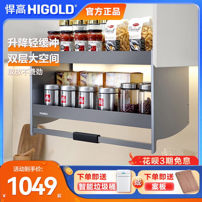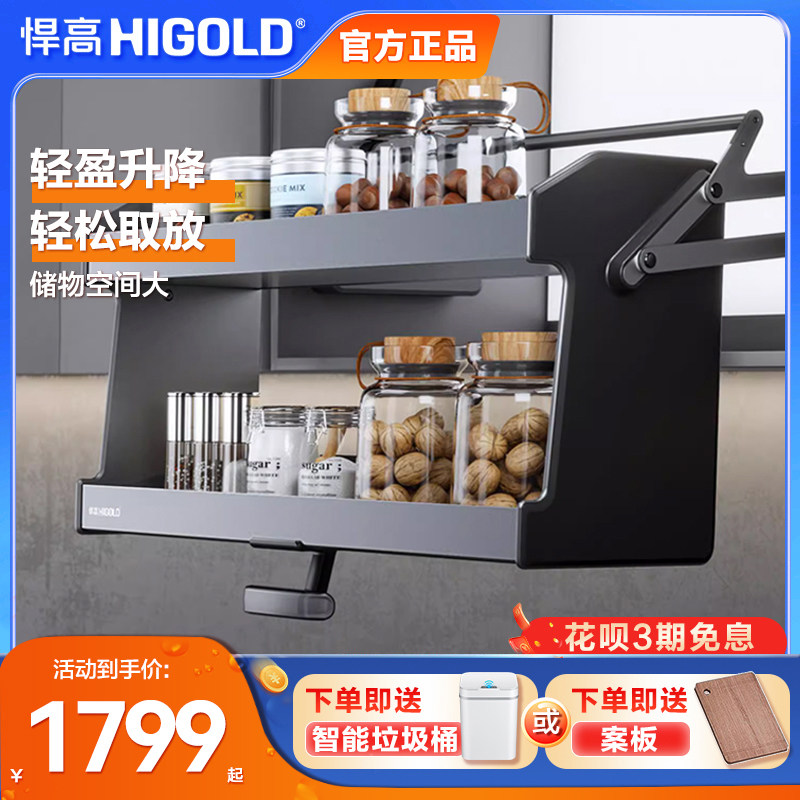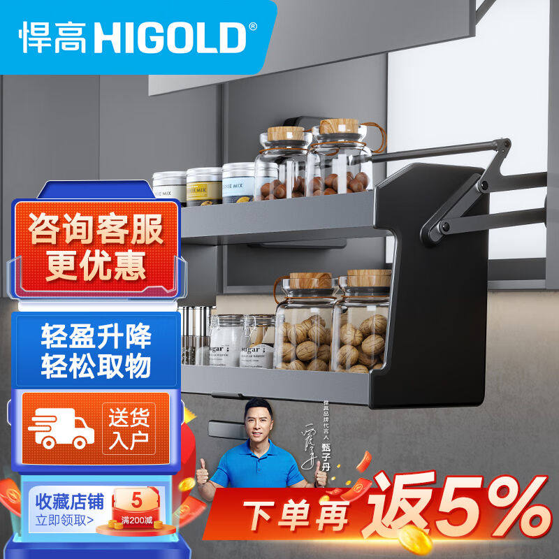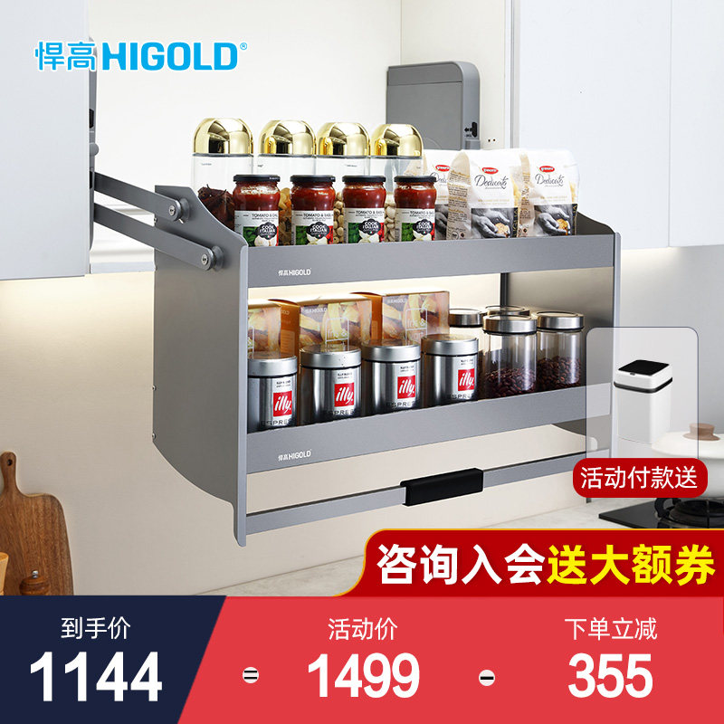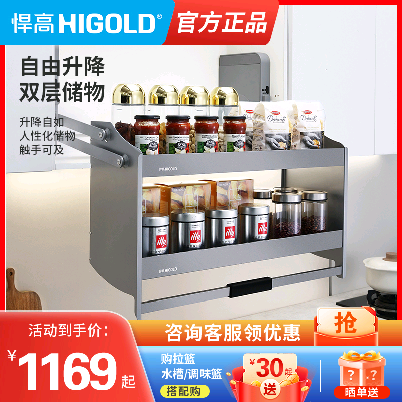 HIGOLD/悍高 吊柜升降式橱柜拉篮碗篮调味拉篮下拉式双层厨房拉篮