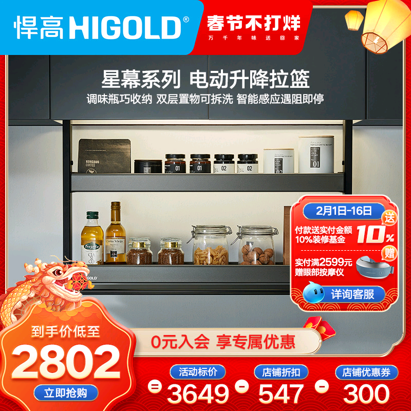 HIGOLD/悍高星幕智能电动升降拉篮厨房双层拉篮吊柜升降调味篮