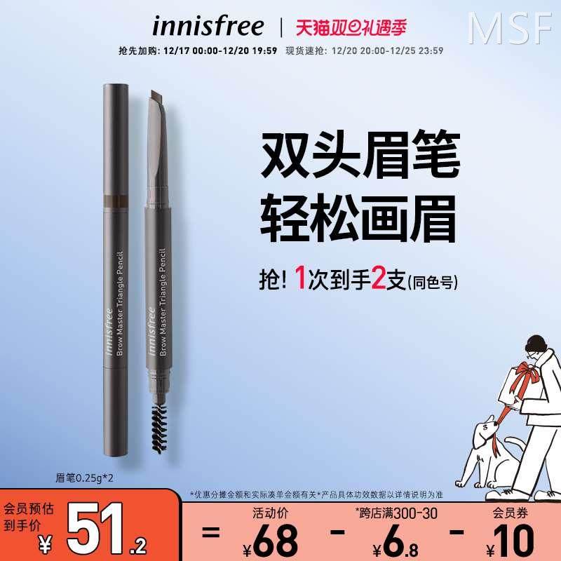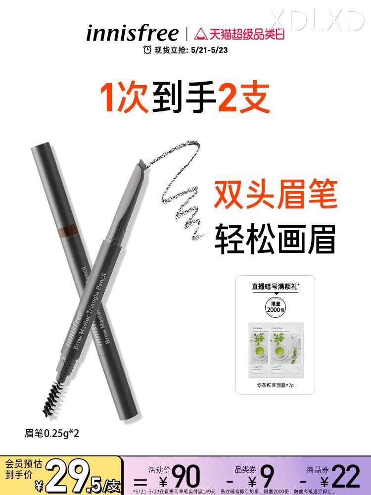 innisfree/悦诗风吟自然双头持久不易脱色眉笔防水防汗不晕染便携