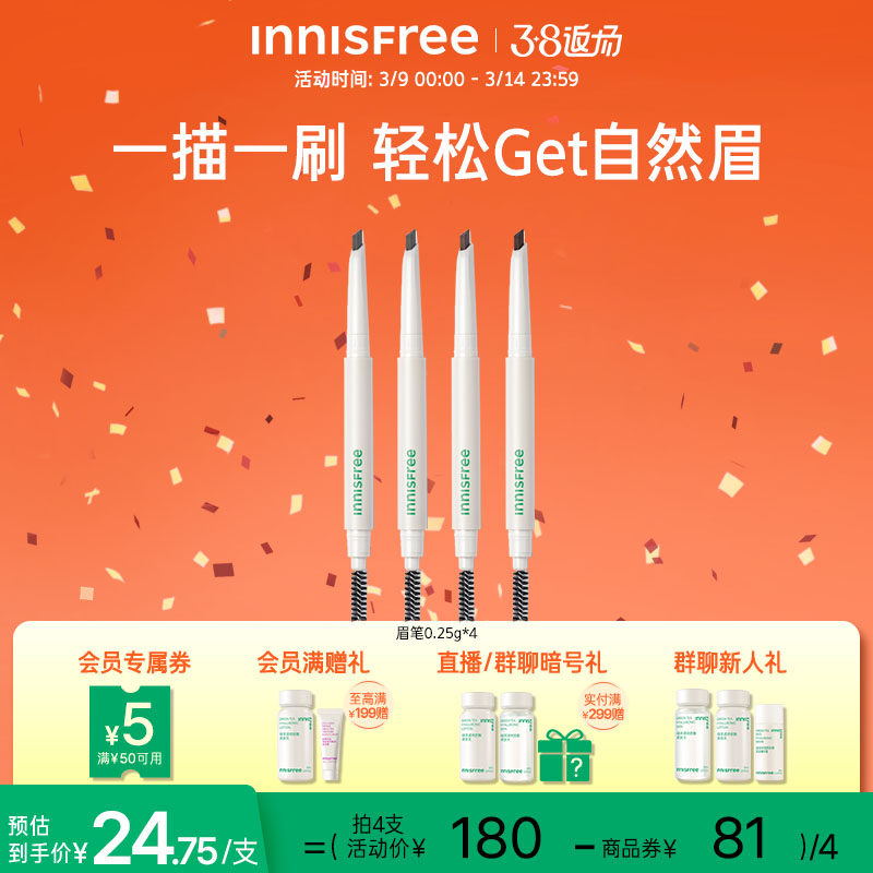 韩国innisfree悦诗风吟自动双头眉笔旋转椭圆扁头持久防水带眉刷