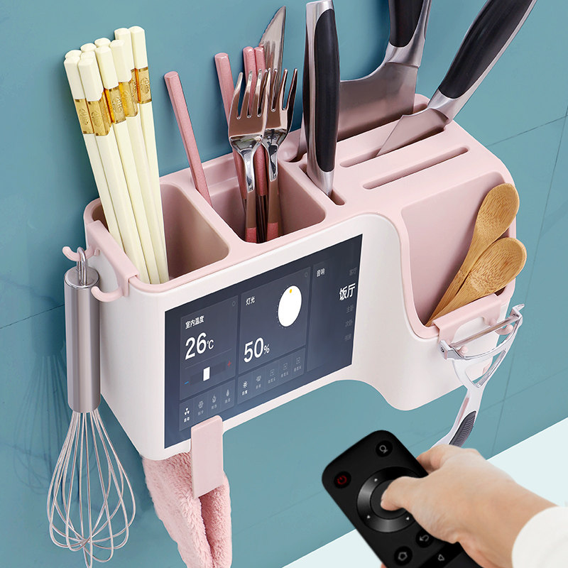 筷子置物架家用厨房刀架一体勺子收纳盒快筷子篓笼筒壁挂式沥水筷