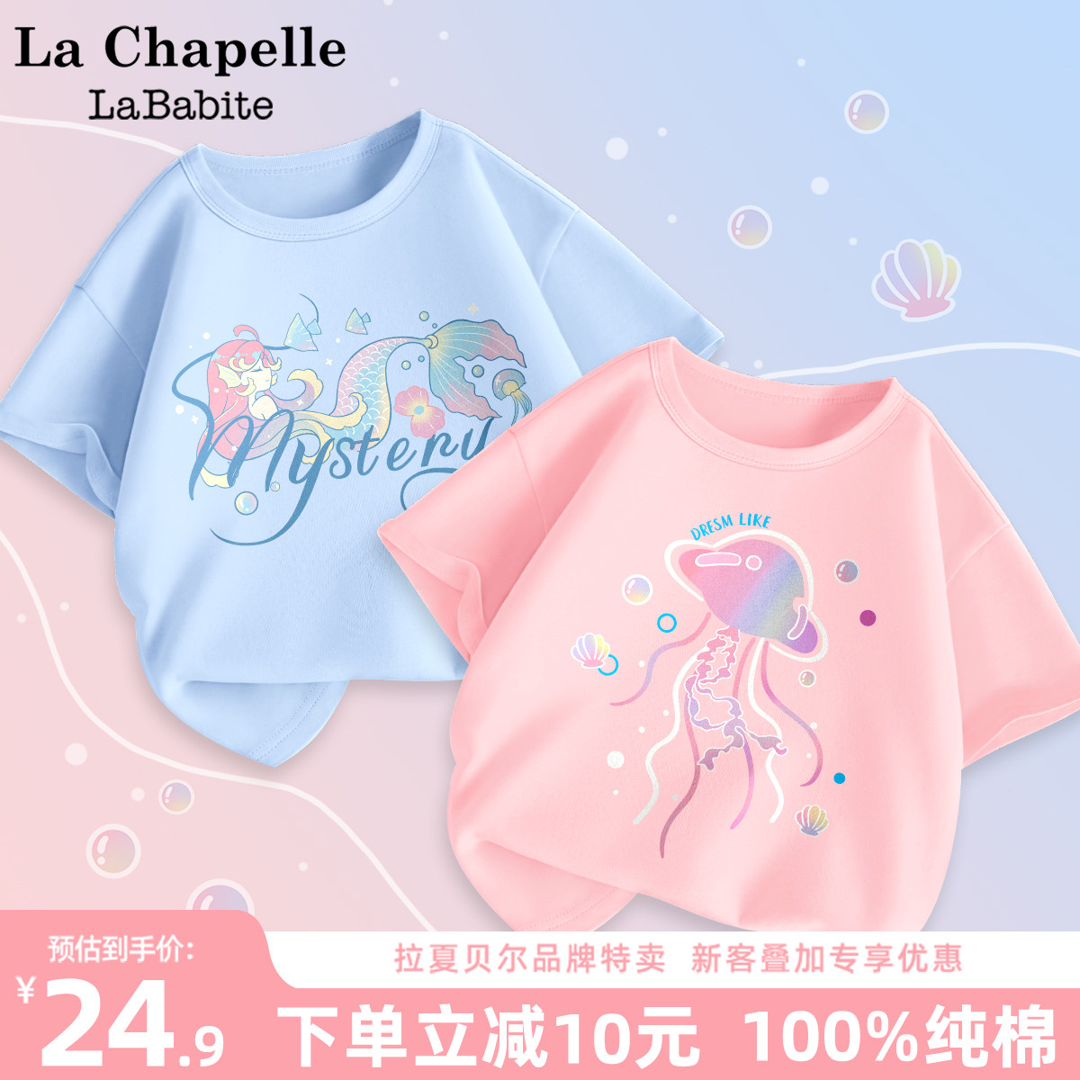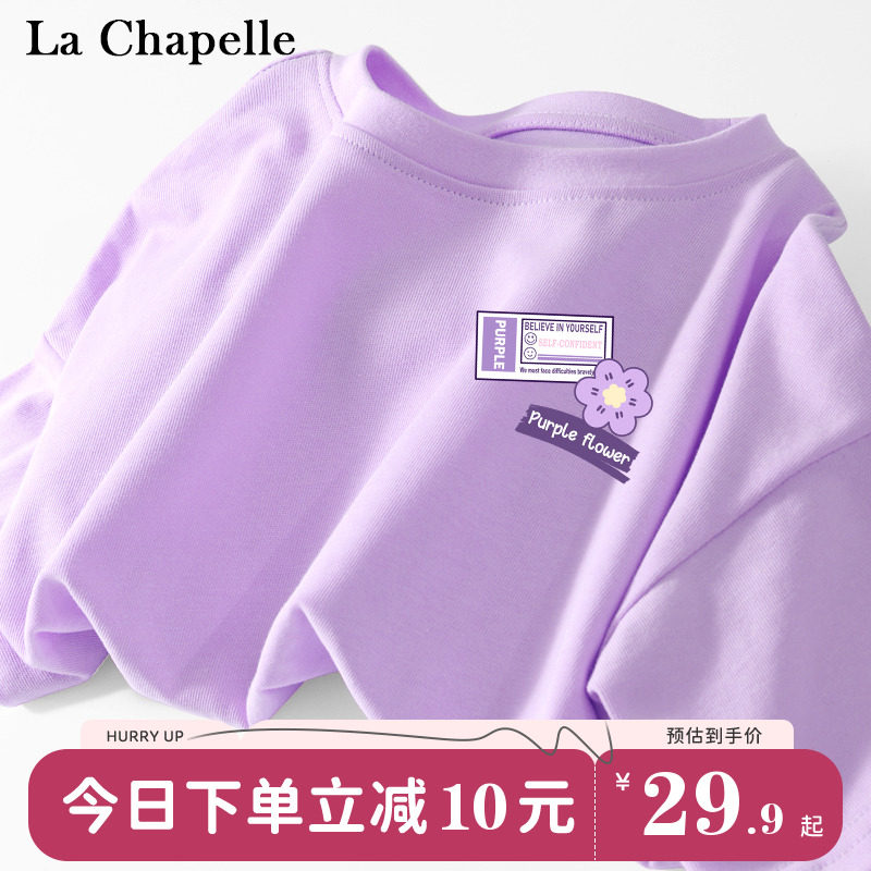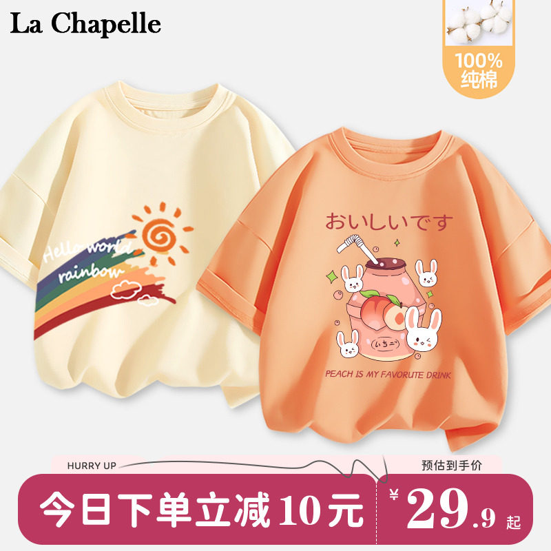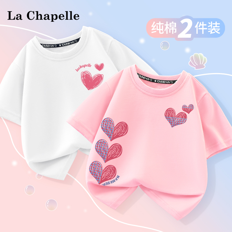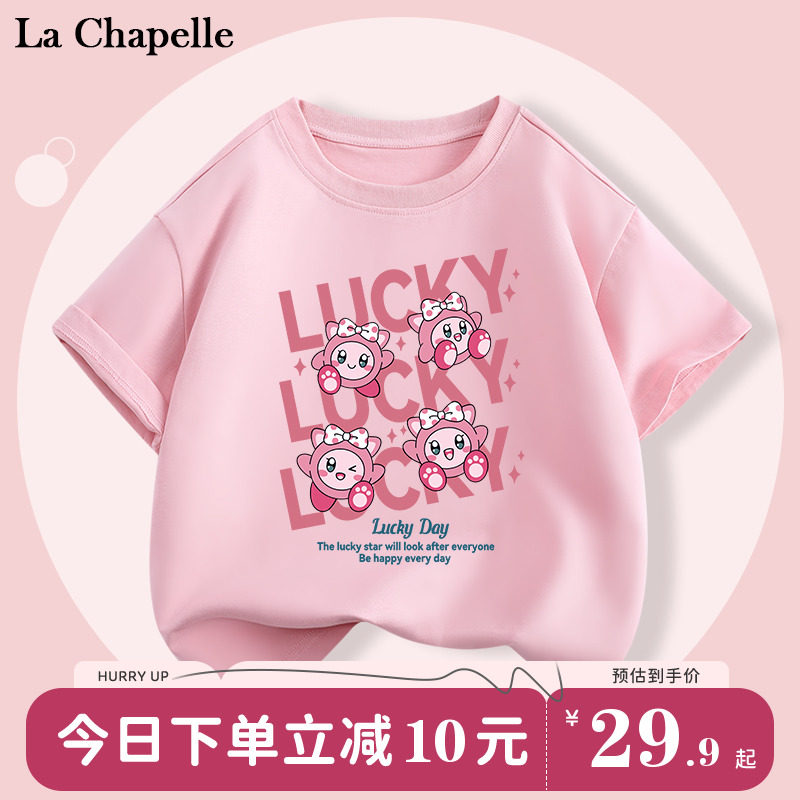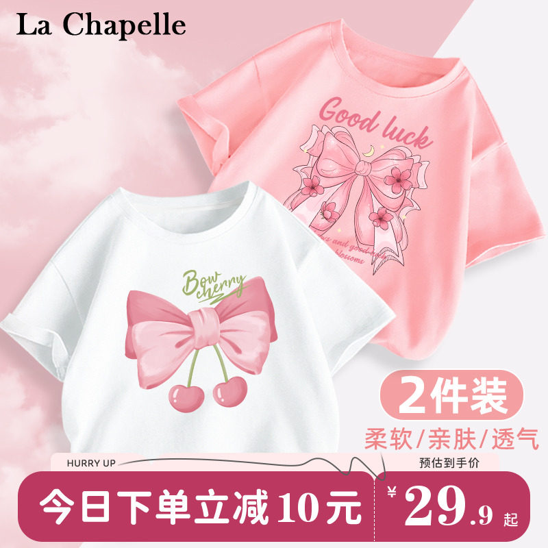 拉夏贝尔女童t恤短袖夏季儿童薄款半袖纯棉衣服女大童新款体恤衫