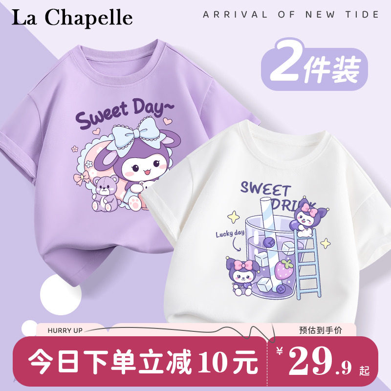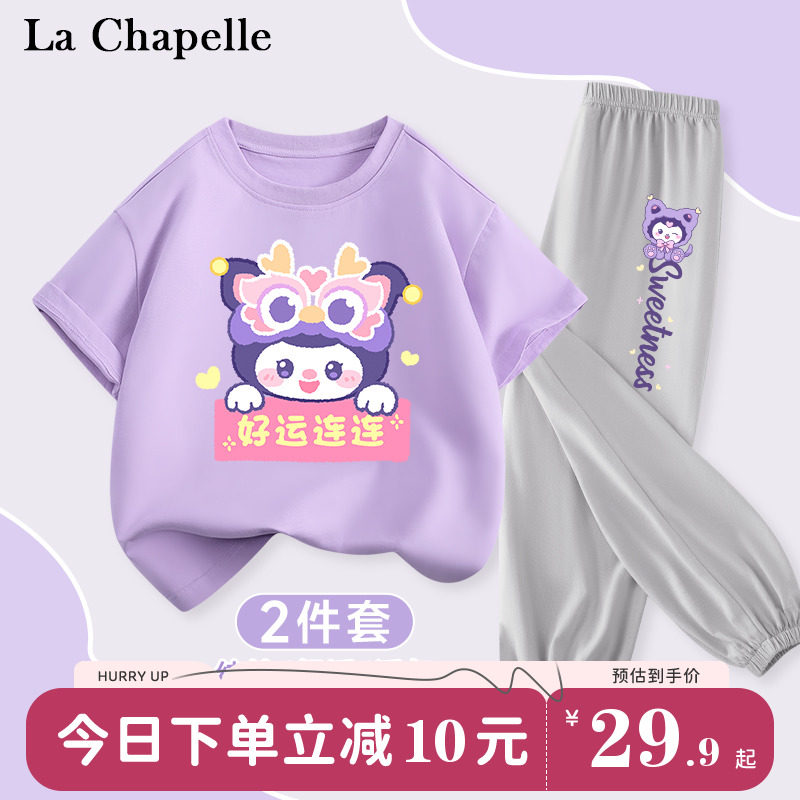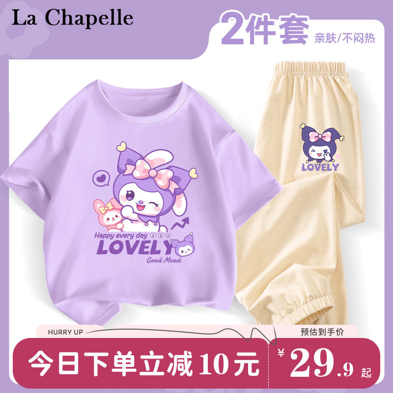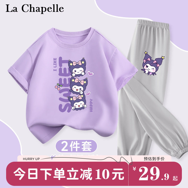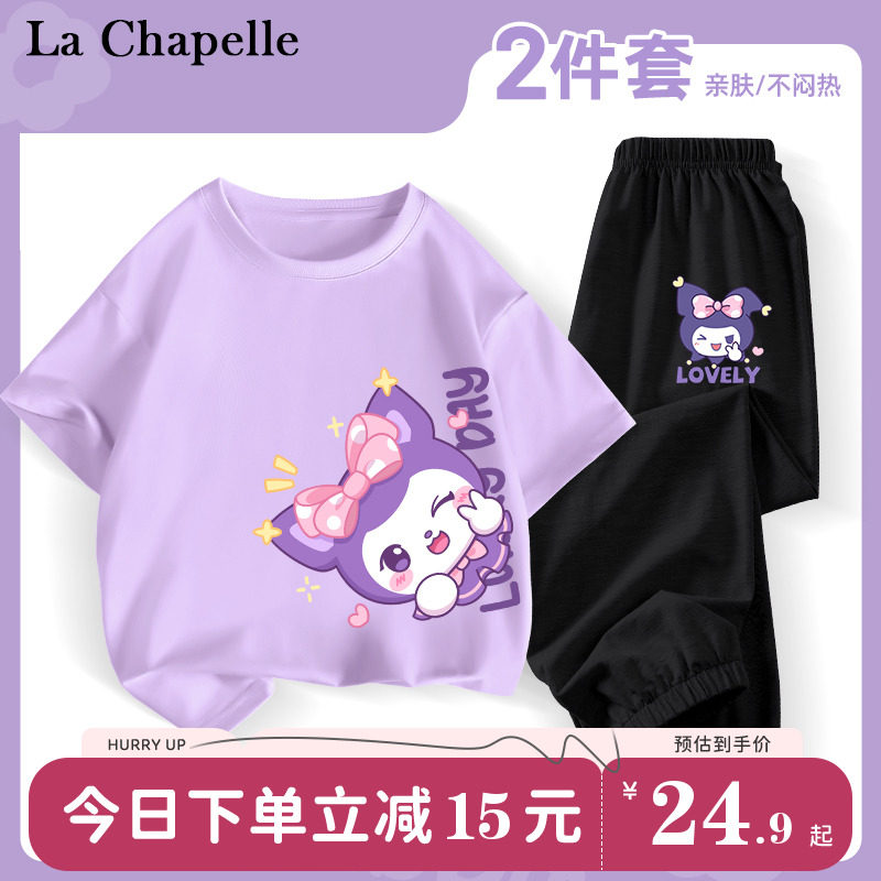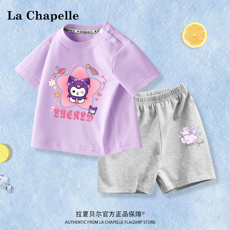 拉夏贝尔儿童套装女童装2024新款夏季薄款纯棉衣服库洛米紫色夏装