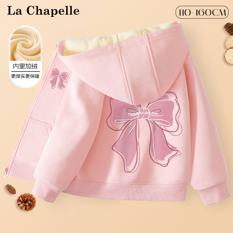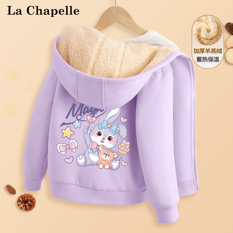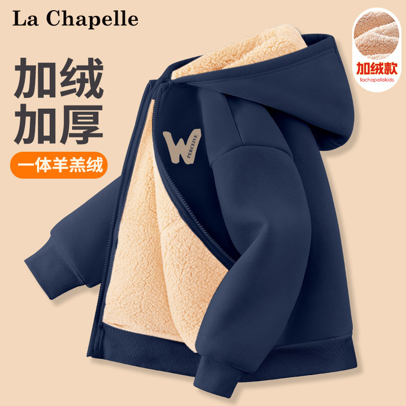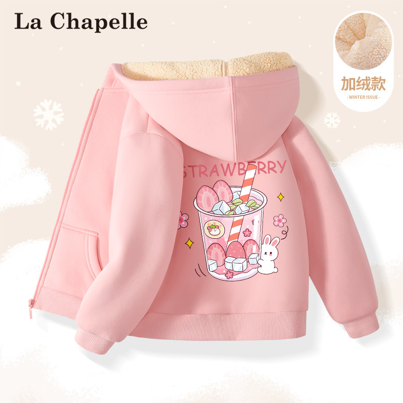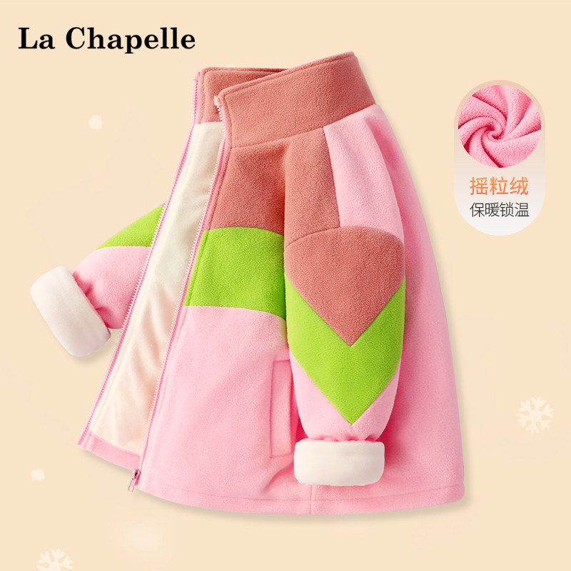 拉夏贝尔女童加绒外套秋冬款2024新款男童冬装棉服儿童摇粒绒上衣