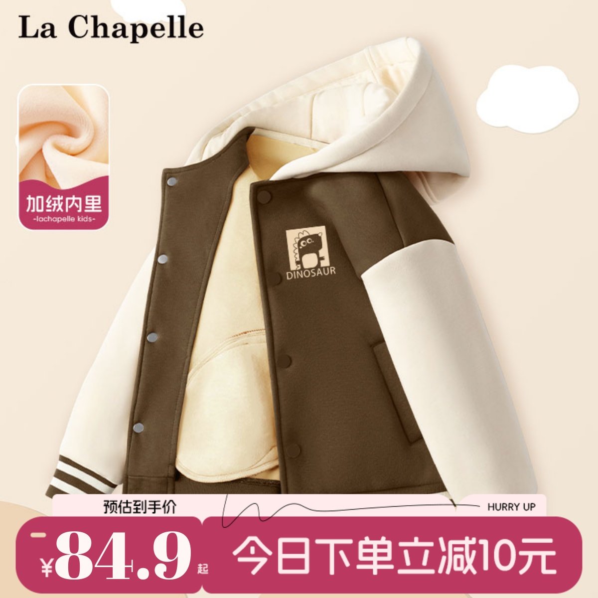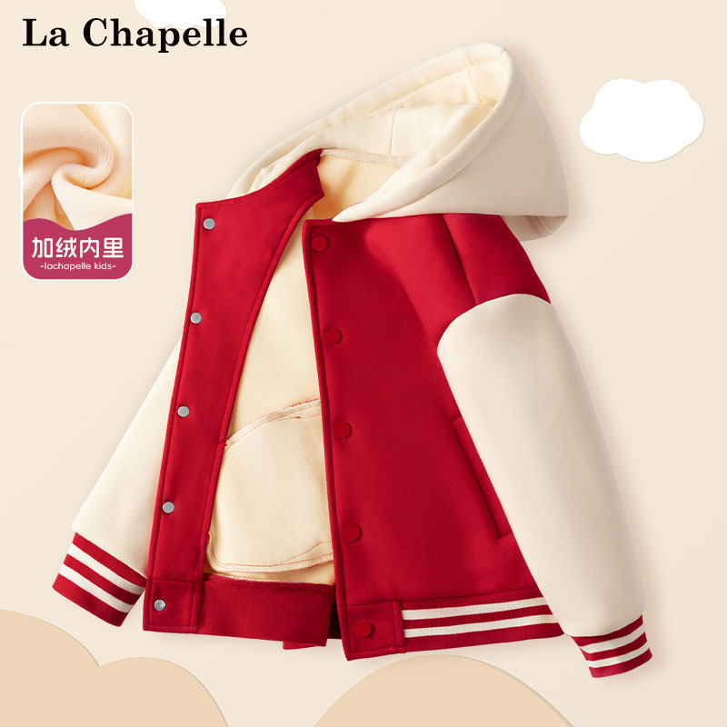 拉夏贝尔男童加绒外套秋冬款儿童加厚一体绒棉服男大童冬季棒球服