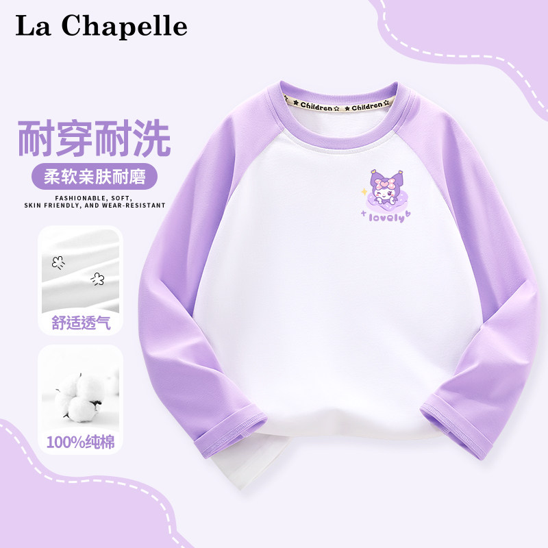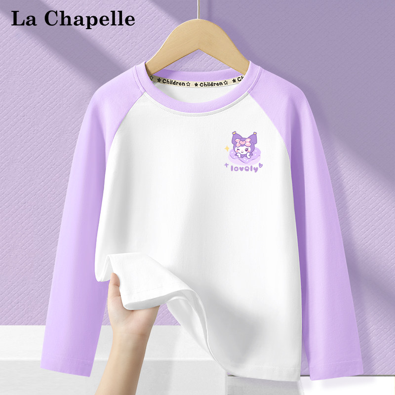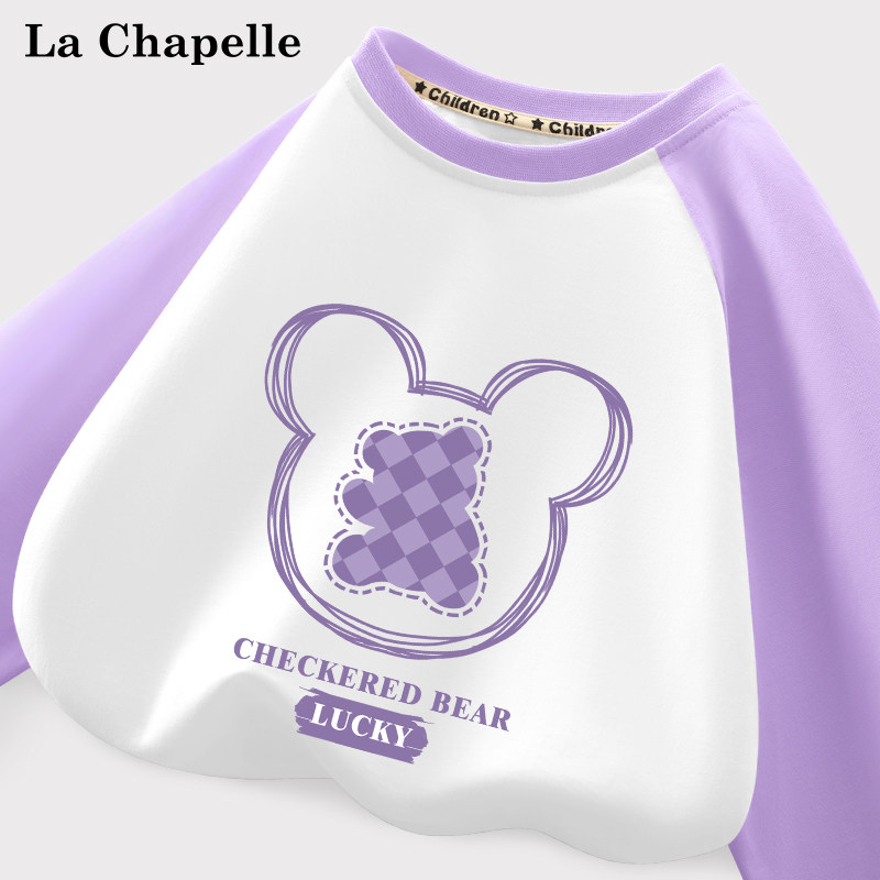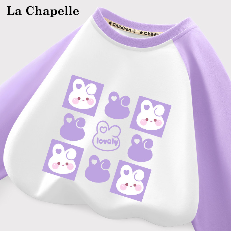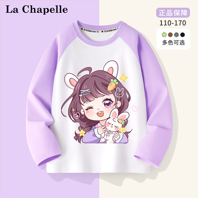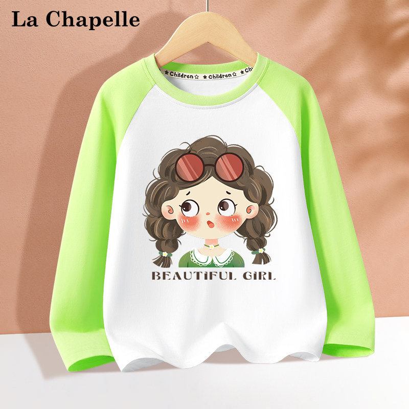 拉夏贝尔童装儿童长袖t恤春季时髦插肩袖女童打底衫女孩纯棉衣服