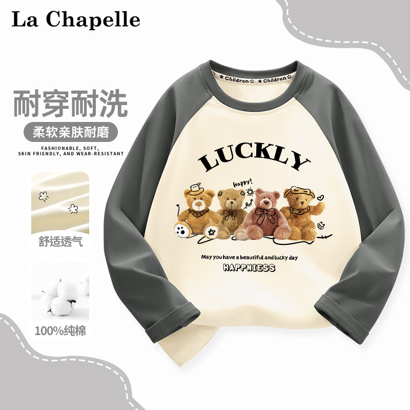 拉夏贝尔儿童长袖打底衫2024新款男孩圆领纯棉衣服男童t恤上衣潮