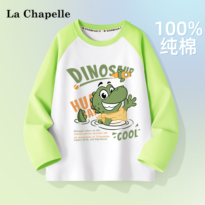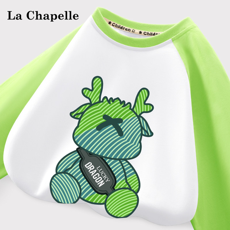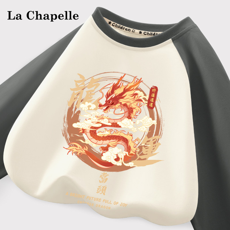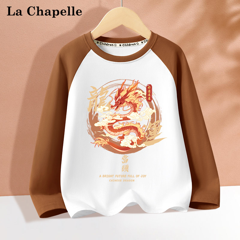拉夏贝尔儿童长袖春季中大童纯棉衣服龙年上衣童装男童t恤打底衫