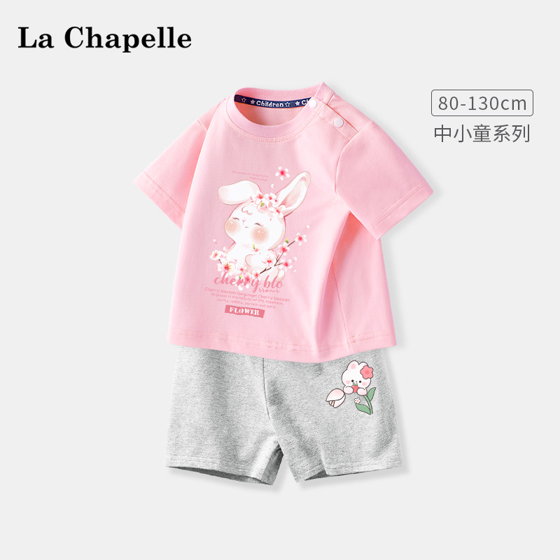 拉夏贝尔女童短袖套装2024新款婴儿纯棉衣服夏季薄款t恤儿童短裤