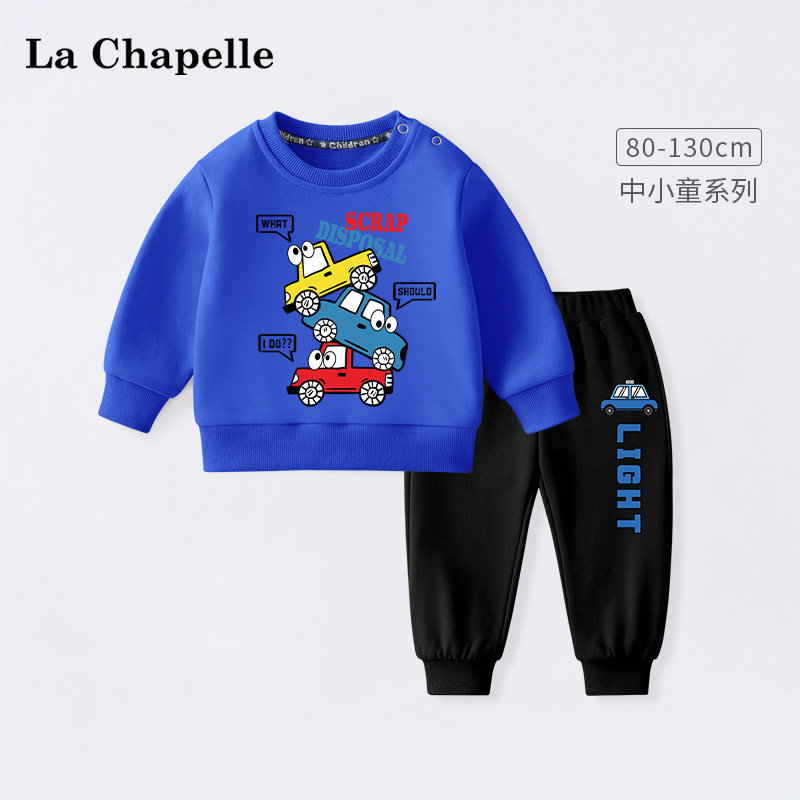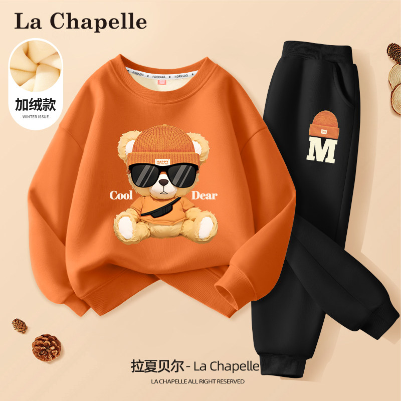 拉夏贝尔男童加绒套装2023新款冬季卫衣男孩童装加厚棉衣儿童冬装