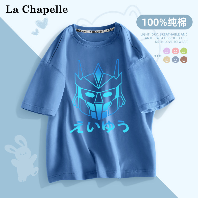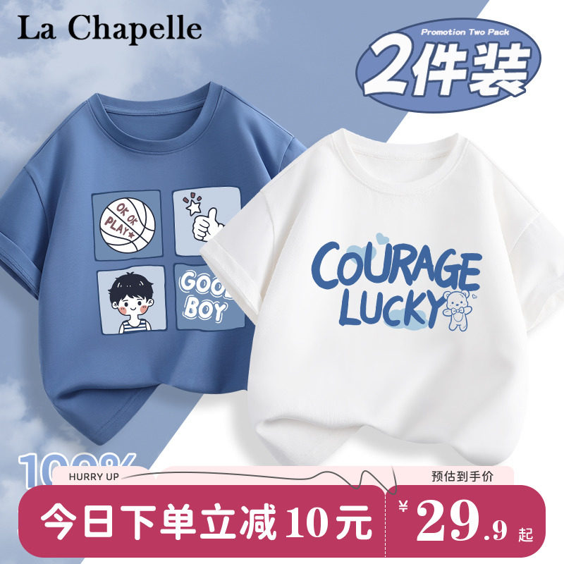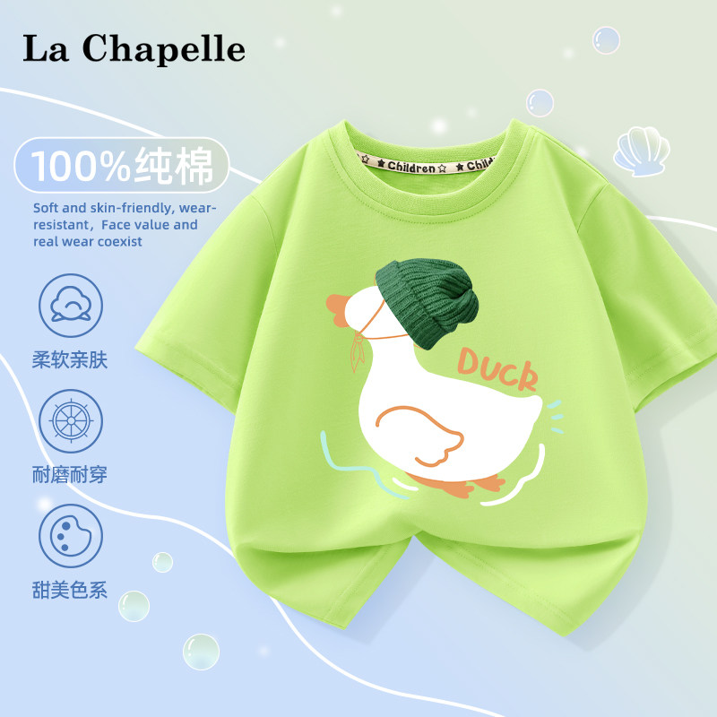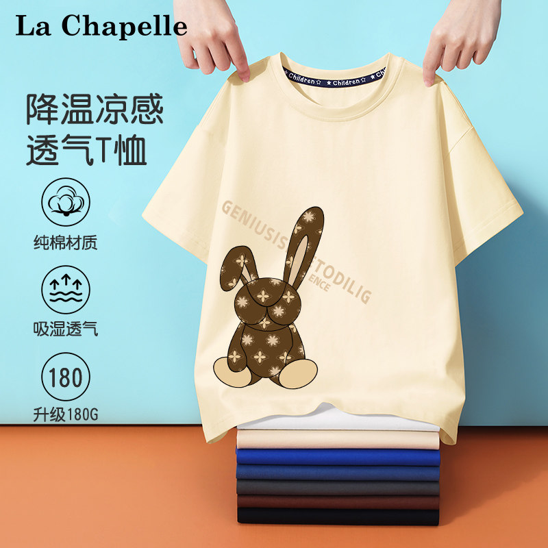 拉夏贝尔男童短袖夏季薄款2024新款儿童半袖t恤夏装宝宝纯棉衣服