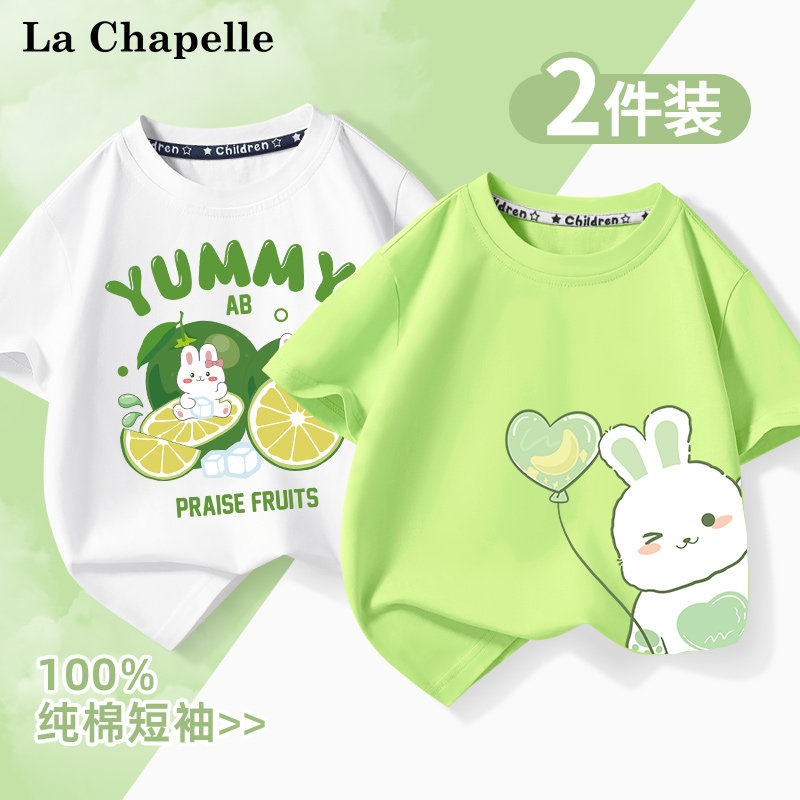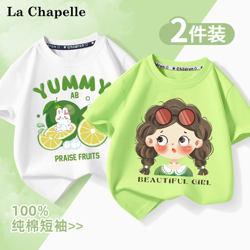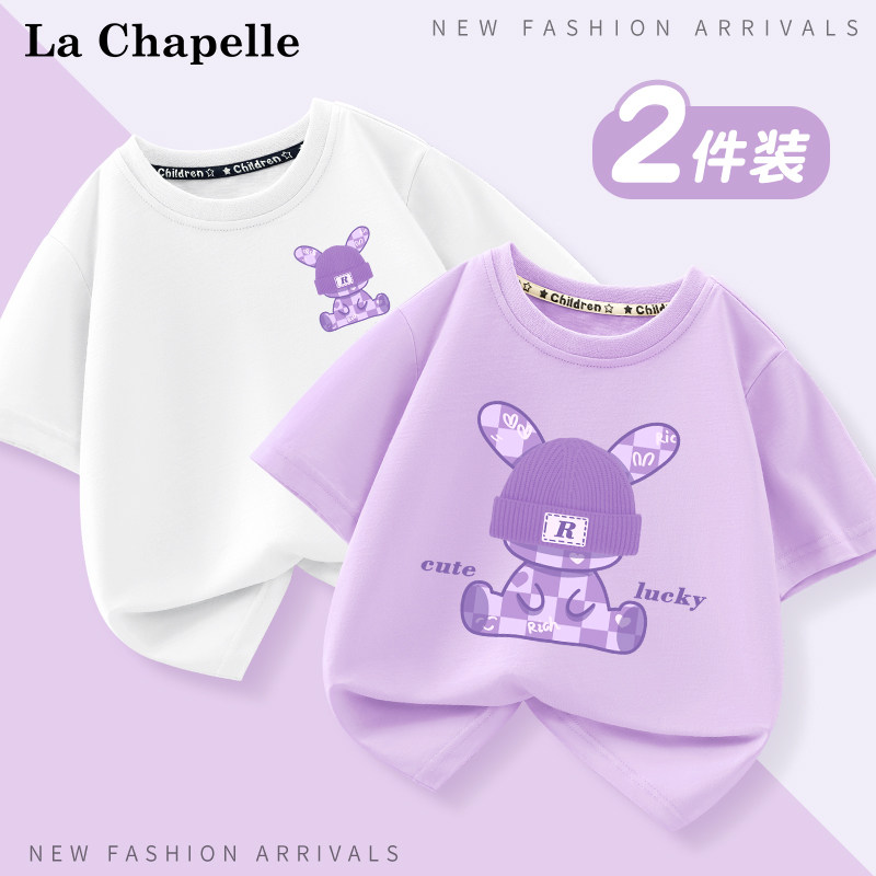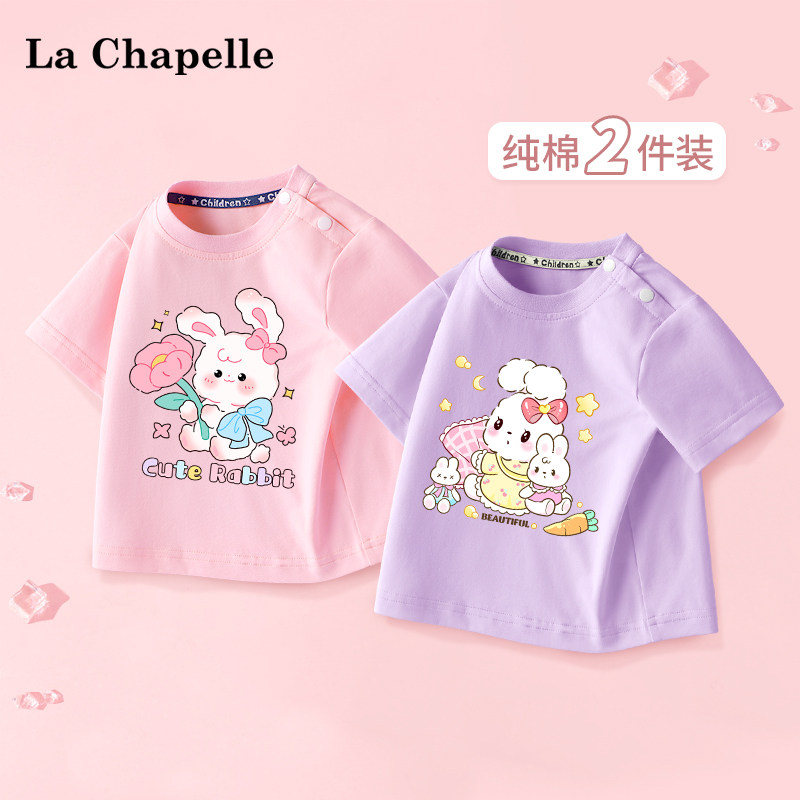 拉夏贝尔儿童短袖t恤宝宝纯棉衣服婴幼儿洋气时髦女童半袖打底衫