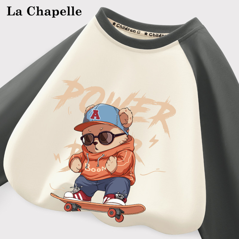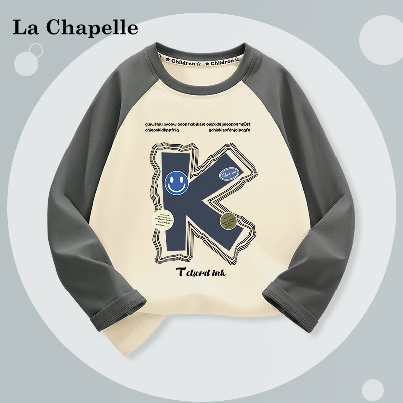 拉夏贝尔男童长袖t恤儿童春季纯棉衣服中大童圆领上衣男孩童装潮