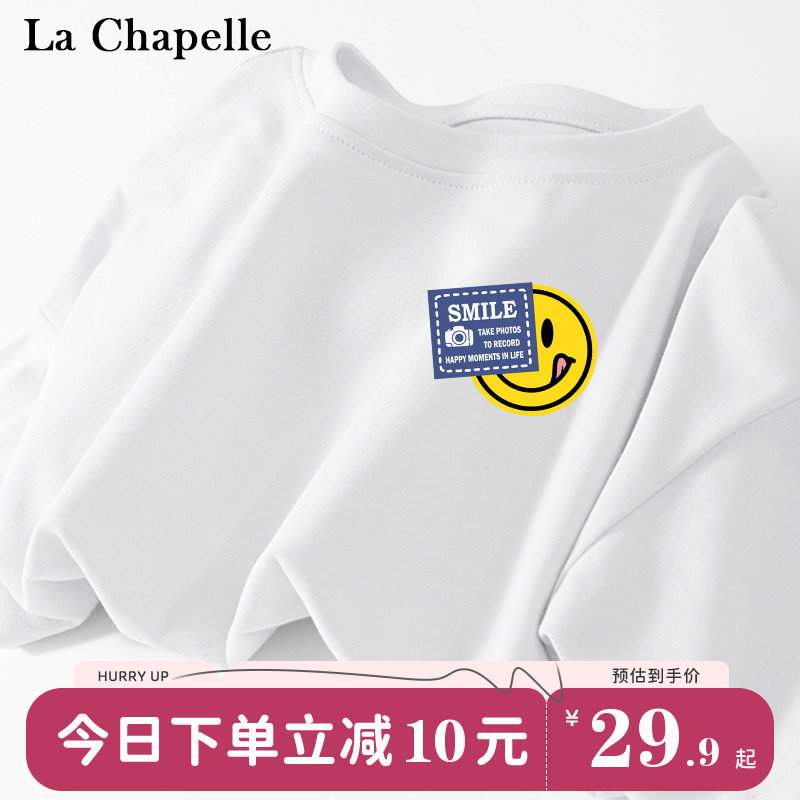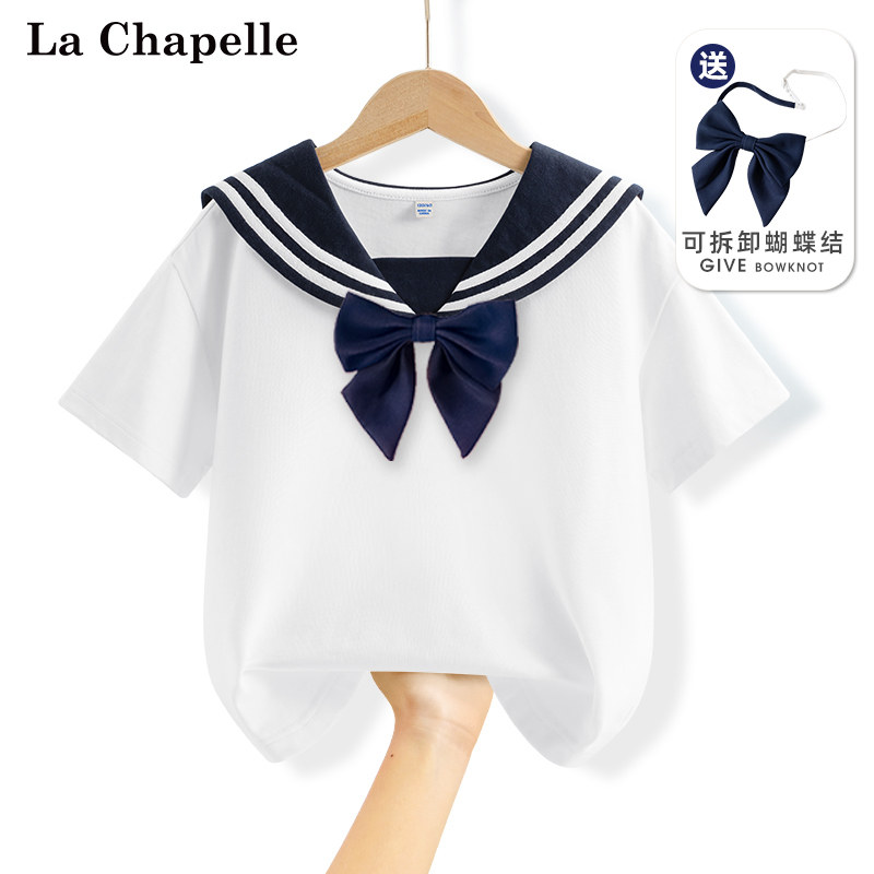 拉夏贝尔女童短袖t恤儿童学院风上衣白色童装夏装女大童纯棉衣服