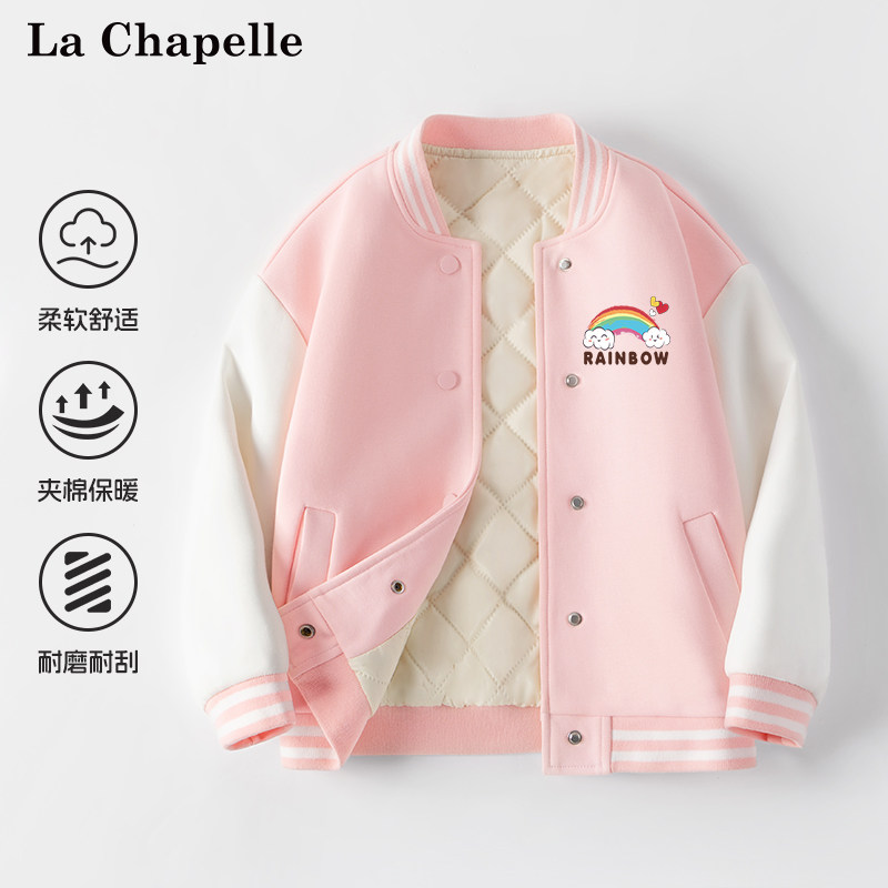 拉夏贝尔女童外套秋冬款2024新款大童冬季加厚棉服儿童加绒棒球服